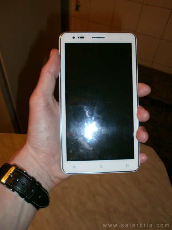 Прежде всего, нужно сказать, что для смартфона это устройство действительно большое — больше, чем ожидаешь, даже заранее зная, что лежит в коробке с надписью Mini Pad или мини планшет. Кроме этого, оно довольно увесистое — примерно на 80 грамм тяжелее чуть меньших по размерам Samsung Galaxy Note и Galaxy Note 2. Тем не менее, в кармане моих обычных джинсов i9977 разместился не причиняя какого-либо дискомфорта.