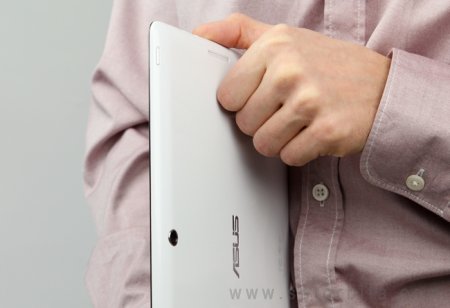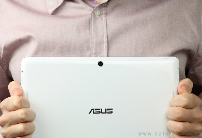 Передняя панель выполнена из традиционного для планшетов ASUS глянцевого черного пластика. Задняя — тоже глянцевая, но ее цвет зависит от модели. Он может быть белый, темно-синий или ярко-розовый. К нам попал ASUS Smart 10 белого цвета.