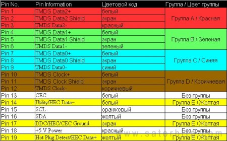Итак, не вдаваясь в технические подробности, рассмотрим распиновку любого современного HDMI кабеля (класса High Speed with Ethernet).