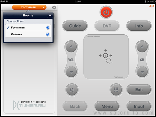 Для настройки и управления нужно установить бесплатное приложение из AppStore - Dijit. При первом запуске приложения предлагается зарегистрироваться, либо ввести данные аккаунта FaceBook. Авторы приложения честно сообщают, что это нужно для информирования пользователя о различных акциях и предложениях от производителя, поэтому я этот этап пропустил. Далее несколько диалогов связанных со списком оборудования, которое будет управляться с планшета. Хотя интерфейс приложения не русифицирован разораться с ним может даже неопытный пользователь.