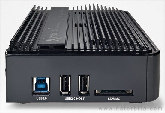 На передней панели Xtreamer SideWinder 3 расположен минимум элементов – лишь круглая кнопка включения с синим индикатором. На правой панели находится крышка отсека HDD, вмещающего 2,5-дюймовый жесткий диск SATA (поддерживаются накопители объемом до 1 ТБ), а сзади – разъемы питания, HDMI (1.4), LAN, коаксиальный SPDIF, оптический SPDIF и композитные аудио/видео. Картридер для карт SD/MMC и USB-разъемы (два USB 2.0 и один 3.0) находятся на левой панели медиаплеера. К сожалению, их расположение нельзя назвать идеальным – некоторые flash-накопители можно будет подключить, только используя USB-удлинитель.