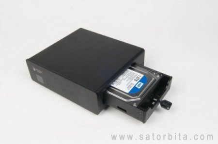 Отсек для быстрой установки жесткого диска на поверку оказался реализован не самым удобным образом. Во-первых, для его открытия требуется специальный шестигранный ключ, терять который настоятельно не рекомендуется – замок хоть и предельно простой, но подручными средствами открыть его будет не очень легко. Далее, винчестер в «салазках» закрепляется четырьмя винтами, т.е. «безотверточной» сборки здесь нет и близко – конечно, это более удобное решение по сравнению с тем, что было в A-300 (где для крепежа жесткого диска внутри корпуса использовались девять винтов и две раздельные пластмассовые детали), но менее удобное по сравнению с тем, что есть у конкурентов.