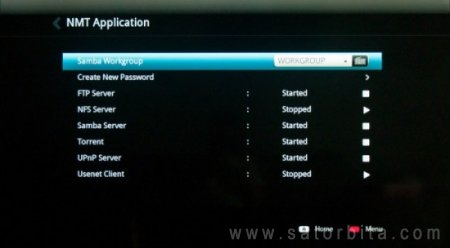 Традиционно для плееров Popcorn Hour, в основной прошивке нет торрент-клиента и ряда сетевых сервисов – они доступны в виде отдельно устанавливаемых «NMT-приложений» (Networked Media Tank, собственная программная платформа Cloud Media). Их можно установить как на внутренний жесткий диск (для этого он должен быть отформатирован в формат Ext3), так и на дополнительный флеш-драйв или SD-карту – этот вариант предпочтительнее, если пользователь собирается использовать винчестер с NTFS (для более удобного подключения к ПК с Windows по USB). В состав NMT-приложений входят серверы FTP, NFS, Samba и UPnP, клиент Usenet и уже упомянутый Torrent-клиент (в качестве которого здесь выступает мультиплатформенный Transmission, для его администрирования используется веб-интерфейс).