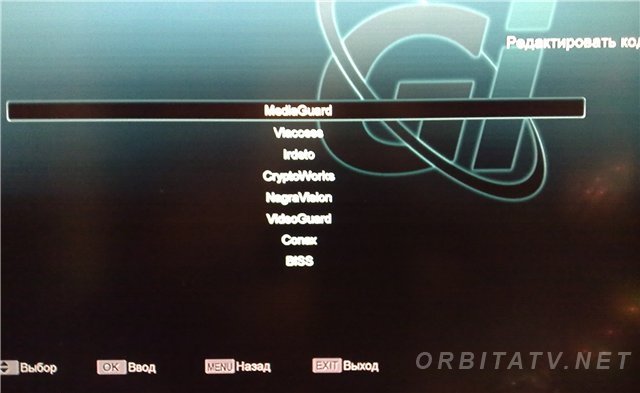В этом меню воспроизводится скинирование, редактирование транспондеров, спутников, выбирается тип LNB, стандарта DiseqC (ресивером поддерживаются 1.0,1.1,1.2), включение выключения позиционера на обраном спутнике, 0/12В, поляризация и питание LNB.